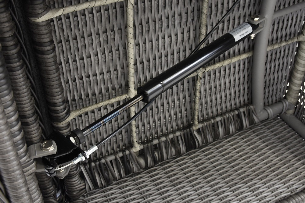 - Möbel haben ein Aluminiumgestell. Ihr Überzug ist aus gewebtem Kunststoff hergestellt.