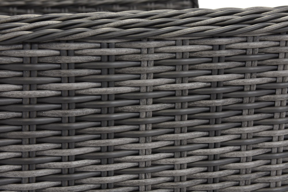 - Der Kunststoff wurde dekorativ geflochten - das ist das Korbgeflecht imitierende Technorattan.